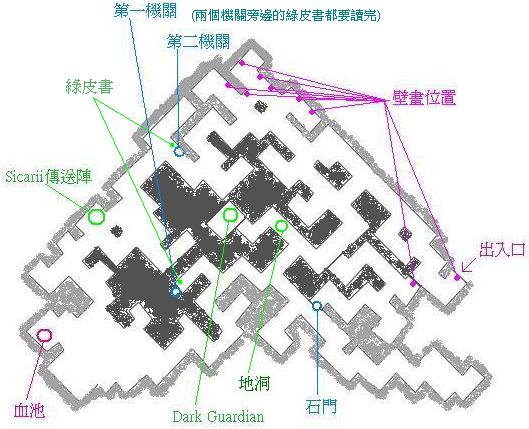 8.再回到卡盾地城的左邊有個魔法陣,在上面喊 "Sicarii" 就可以傳進去打大蜘蛛 Sicarii 了。